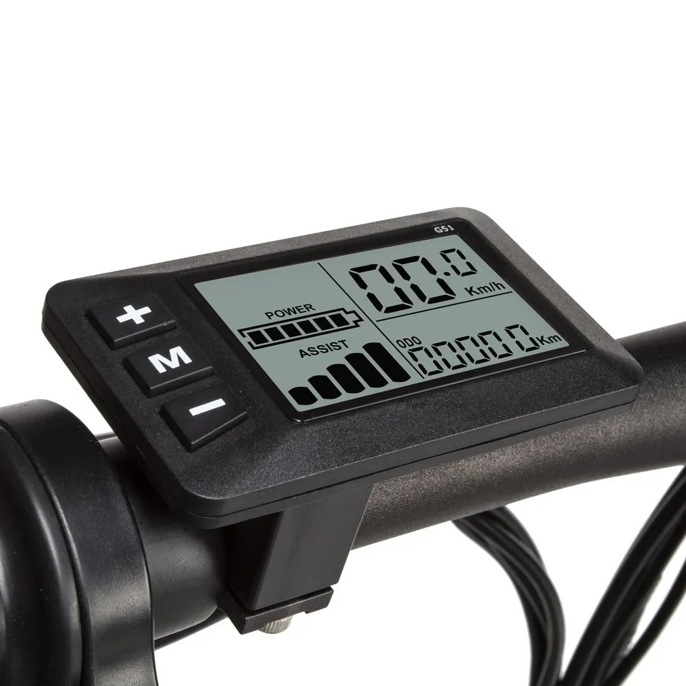 SAMEBIKE LVHLB26B viser effekt, gear, kilometertal og kørehastighed for rytteren.